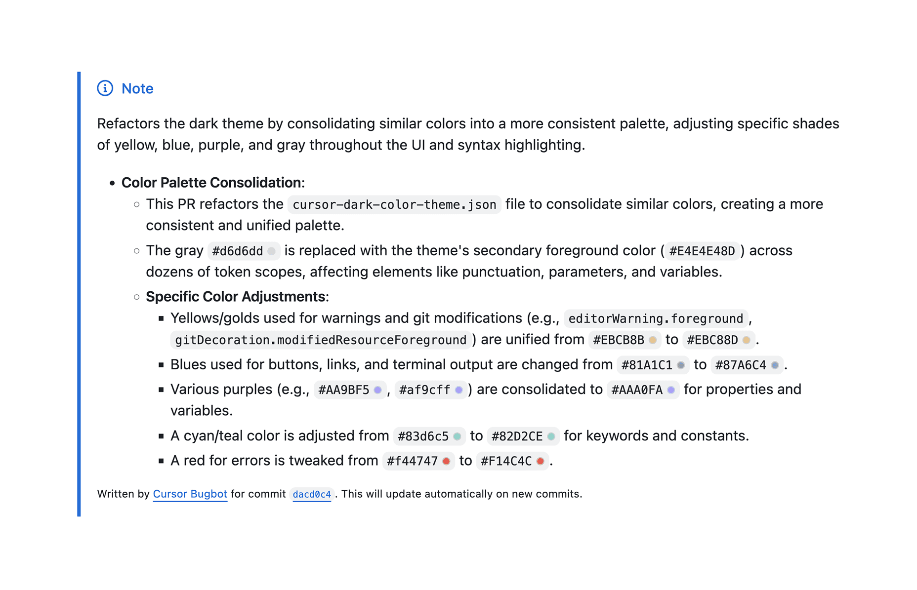 When creating a PR in GitHub, Bugbot will now generate a summary of the changes. The summary will be updated as you push changes so it's always correct. This can be disabled in the Bugbot tab of your Cursor dashboard.
