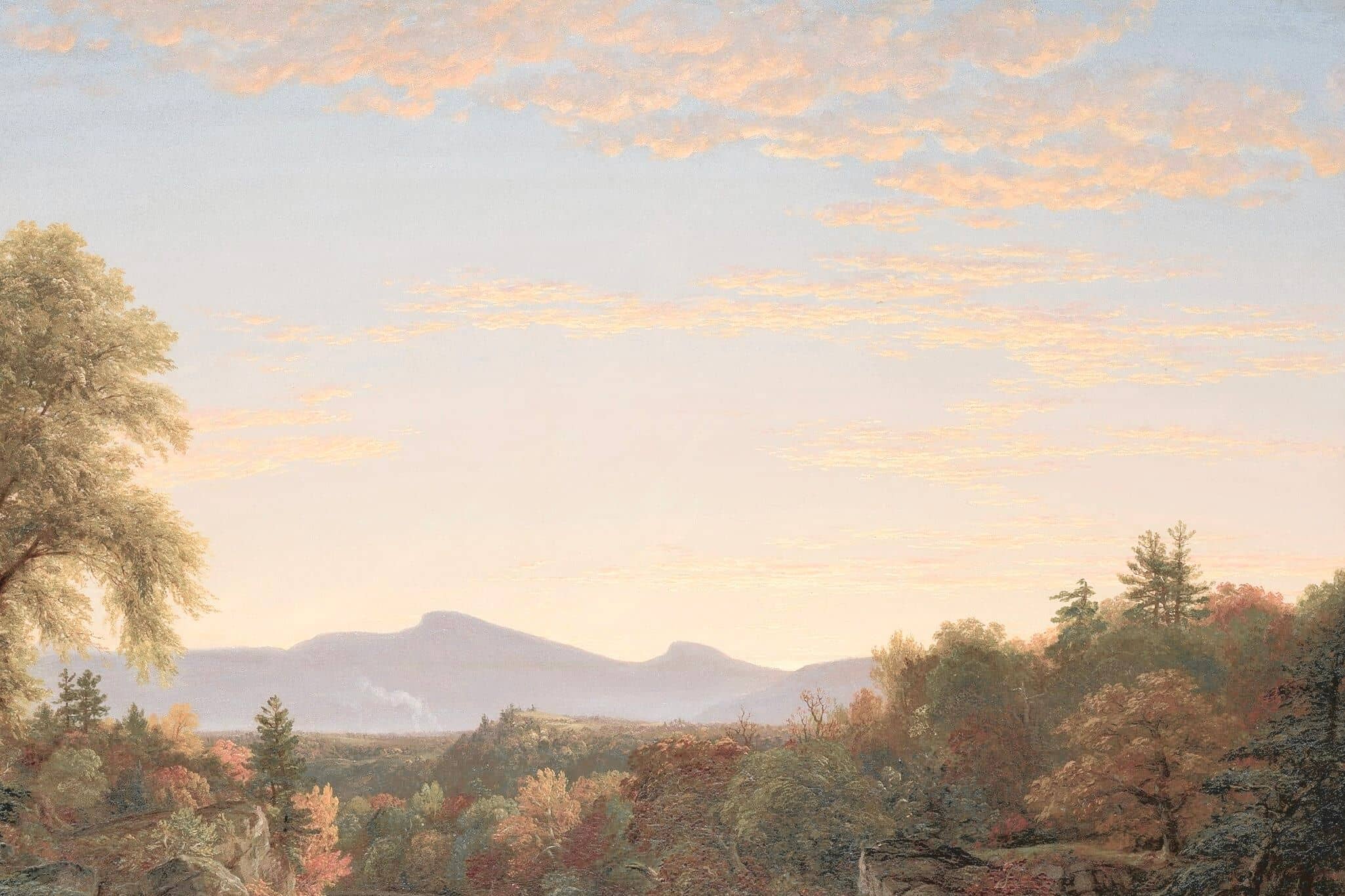 This element contains an interactive demo for sighted users. It's a demonstration of Cursor's IDE showing AI-powered coding assistance features. The interface is displayed over a scenic painted landscape wallpaper, giving the demo an artistic backdrop.